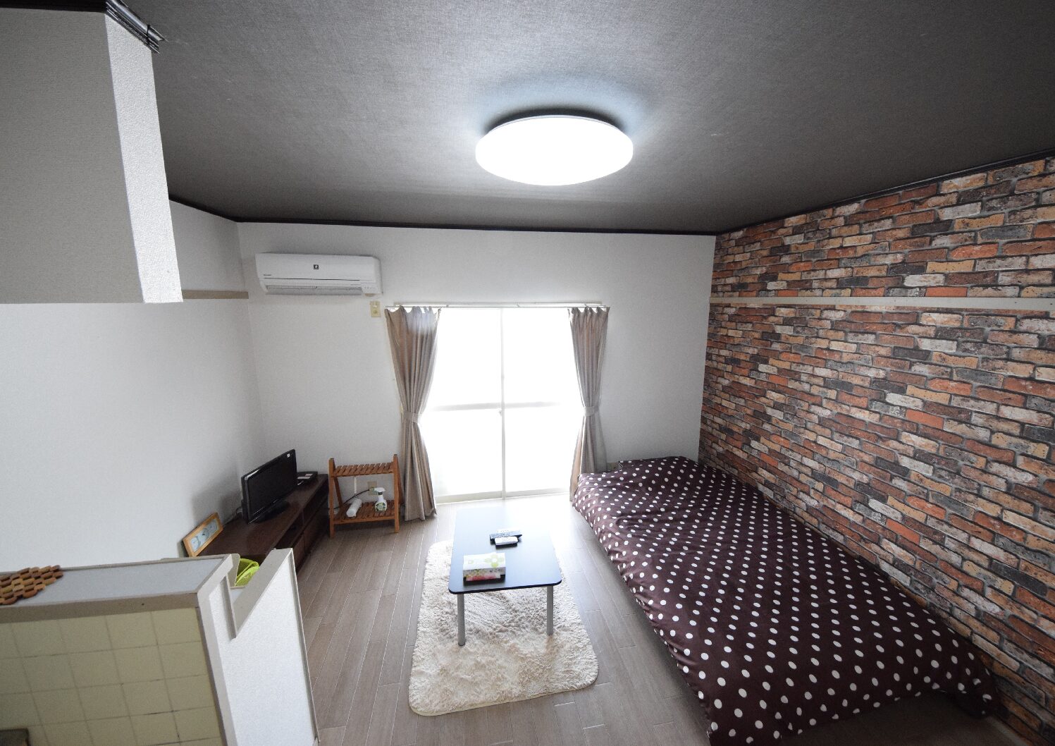 【家具製品】寝具一式・シーツ類・テーブル・テレビ台・ベッド・カーテン付き